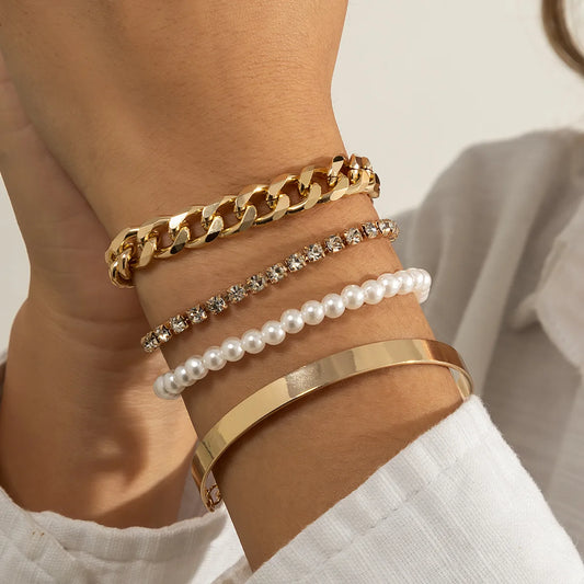 Classic Chain Bracelets (Set of 4) - Gold